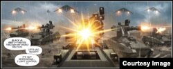В сценарии комикса "Молчащие руины" российские вооруженные силы лучше подготовлены к кибернетической войне, чем силы НАТО. Они используют автономные дроны – беспилотники, которые способны сбивать разведывательные дроны НАТО с помощью электромагнитных волн.