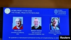 Нобелевская премия в области физики присуждена работающим в американских университетах учёным Джону Кларку, Мишелю Деворе и Джону Мартинису за исследования в области квантовой механики. В сообщении Нобелевского комитета говорится, что учёные удостоены награды "за открытие макроскопического квантово-механического туннелирования и квантования энергии в электрической цепи".