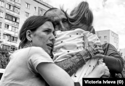 И в конце каждого из этих трех невероятных дней вернувшиеся из плена уезжали на реабилитацию, и на лужайке возле больницы оставались родственники тех, о ком так ничего и не стало известным. Адреналин дня уходил, горе возвращалось, с ним возвращалось одиночество. Они заворачивались в своих родных, фотографии которых были на флагах, согреваясь.