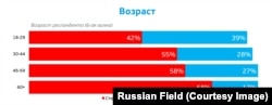 Независимый проект Russian Field с начала войны провел целую серию исследований и опросов об отношении к ней. Руководитель проекта Артемий Введенский, политолог по образованию, еще студентом начал участвовать в полевых исследованиях – интервьюером, оператором фокус-групп, а затем вместе с группой молодых коллег создал Russian Field. Проект занимается как коммерческими исследованиями, так и публичной социологией – чтобы "представлять, что такое российское общество и на какие сегменты оно делится", и в последние месяцы они уделяют этому особое внимание "из-за ситуации с военной операцией", говорит Введенский. Russian Field используют терминологию "военная операция" или "военные действия", чтобы, по словам Введенского, иметь возможность продолжать исследования.