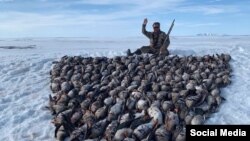 Следственный комитет возбудил уголовное дело о незаконной охоте с причинением особо крупного ущерба (часть 2 статьи 258 УК) из-за фотографии с охотником на фоне надписи "Чукотка 2021" из тушек гусей.