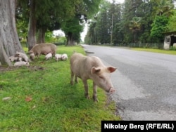 Плодовые деревья и домашний скот необходимы для выживания. "Мы разводим свиней, потому что работать негде. У меня 40 лет стажа, я была ведущим массажистом в реабилитационной клинике в Сухуми. [Когда я уехала из Абхазии из-за войны], открыла фитнес-клуб в Зугдиди. Свое дело я знаю на пятерку, исправляла позвоночник детям, клиенты были очень довольны. Я вложила все свои деньги, но когда мне нужно было расширяться, мне не дали кредит в банке – сказали: возьми нас в долю. Ничего не получилось. Теперь никакого дохода нет. Чем жить? У меня свинья и три коровы – не от хорошей жизни. Их нужно держать, чтобы было что есть", – говорит местная жительница Илико Гасвиани.