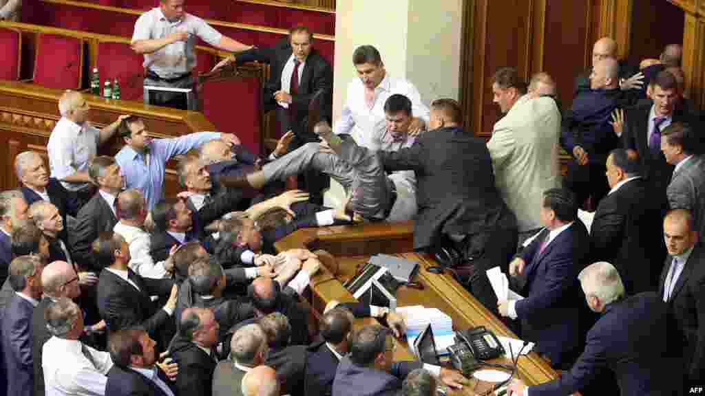 Дракой закончилось обсуждение в Верховной раде Украины законопроекта, связанного со статусом русского языка в республике.