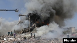 Число жертв взрыва в ереванском торговом центре "Сурмалу", где расположен оптово-розничный рынок, достигло шести. Пропавшими без вести числятся 16 человек. Пострадал 61 человек. Спасательные работы продолжаются, пожар пока потушить не удалось.