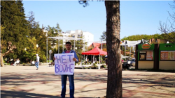 В Петербурге был задержан Николай Романов, устроивший пикет с плакатом "Нет войне".
