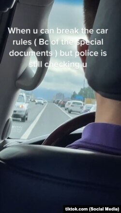 Видео Лидии Слуцкой сопровождается текстом на английском языке, перевести который можно так: "Когда ты можешь нарушать правила дорожного движения (благодаря специальным документам), но полиция тебя все равно проверяет". В ролике видно, как сотрудник ДПС, остановивший Lexus, выписывает его водителю штраф в своем патрульном "форде":