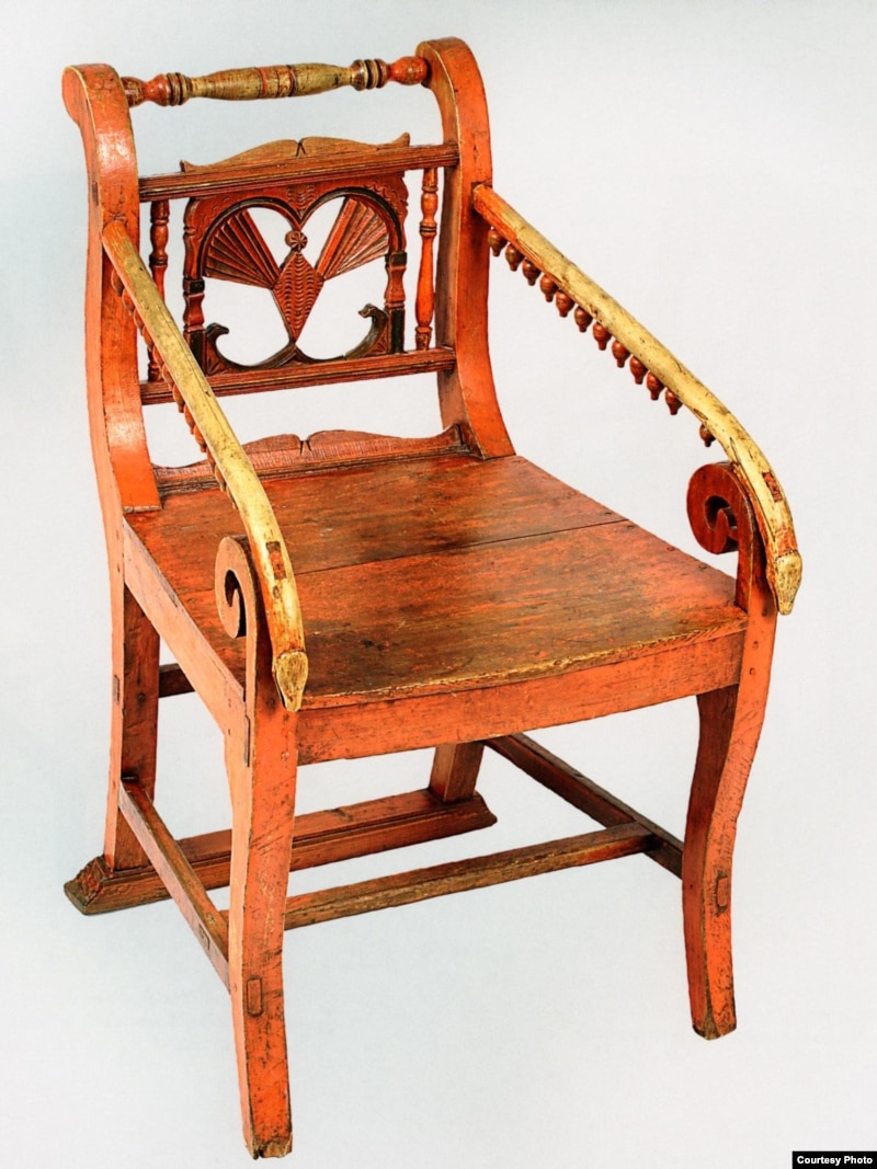 Кресло XIX века из Тарногского Городка Тотемского уезда (Фото из каталога выставки, авторы: Юрий Винецкий и Владислав Карукин)