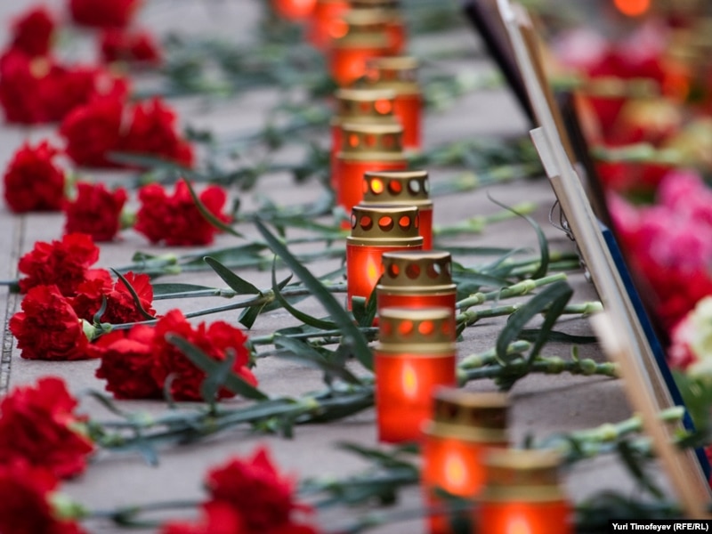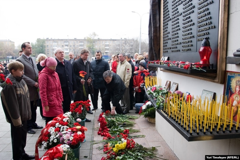 У мемориальной плиты с именами жертв теракта на Дубровке