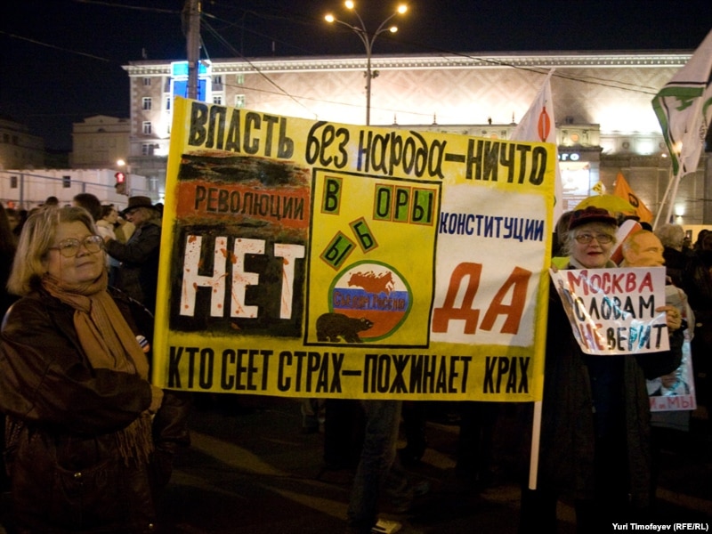 Милиция через мегафоны призывала выходящих из метро "Маяковская" людей не задерживаться и проходить на площадку у гостиницы "Пекин", где началась согласованная с властями акция, организатором которой выступила глава Московской Хельсинкской группы Людмила Алексеева.