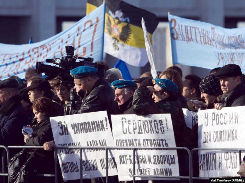 "Армия – спаси Россию, армия – спаси народ", "Русский, помоги русскому, иначе ты будешь следующим", "Министр мебельщик – позор России", "Прекратить военную реформу по-сердюковски!". С такими лозунгами собрались на Поклонной горе несколько тысяч ветеранов ВДВ.