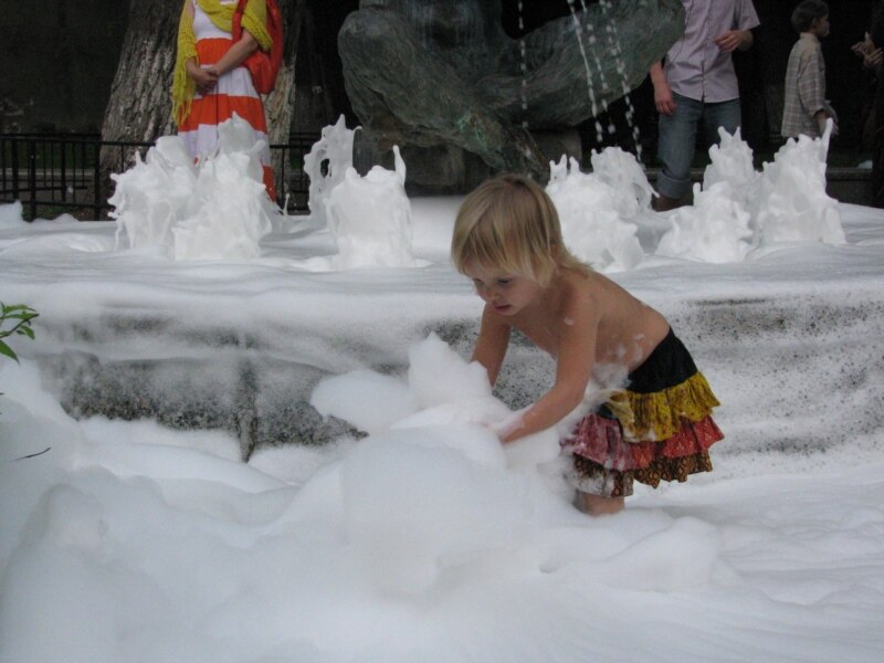 Марина Тимашева: Вокруг Юрия Любимова образовалась целая толпа слушателей, и свою речь он заканчивал под бурные аплодисменты. Получилось импровизированное второе действие, но было еще третье. Выйдя из здания театра Моссовета, мы увидели, что из фонтана валят белые хлопья (видимо, какой-то шутник опрокинул туда флакон шампуня). Пены было много, так много, что она расползалась по всему асфальту, и в ней – благо стояла жара – барахталась малышня, точь-в-точь, как артисты в спектакле Филиппа Жанти.